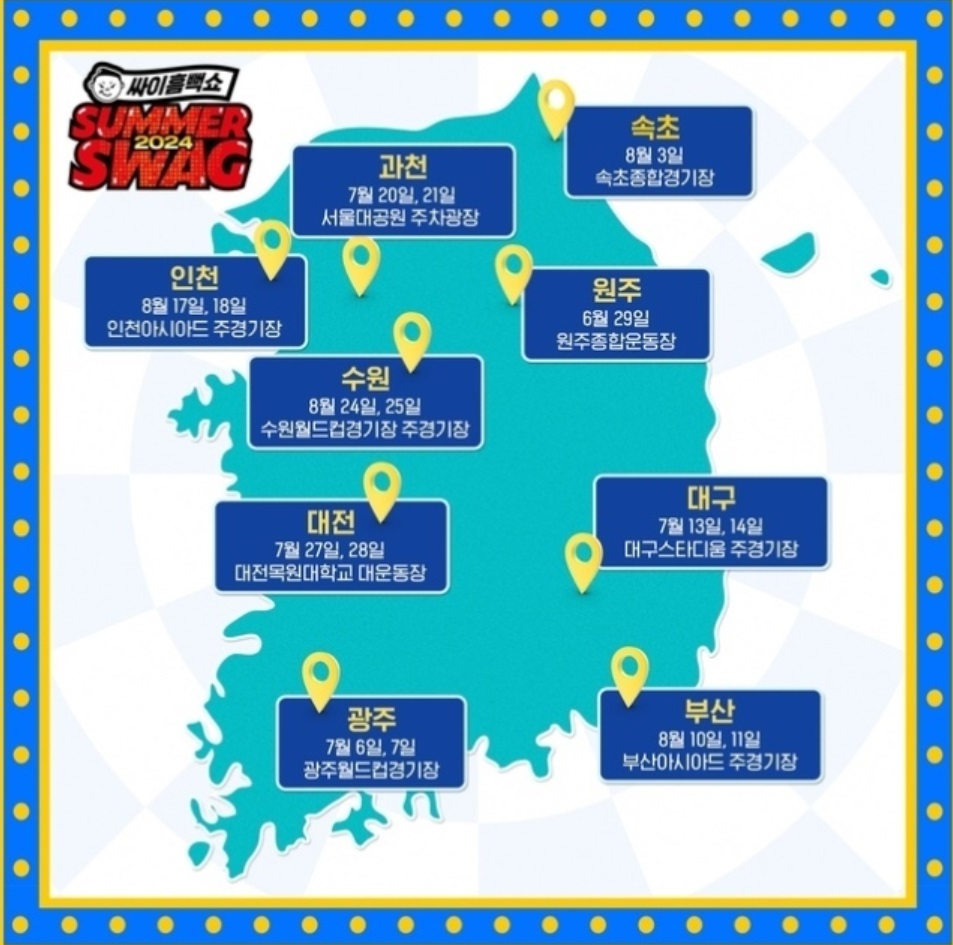 이번 흠뻑쇼 2024는 오는 6월 29일 강원도 원주종합운동장을 시작으로 8월 25일까지 광주, 대구, 과천, 대전, 속초, 부산, 인천, 수원까지 총 9개 도시에서 개최되는 만큼 더욱 뜨거운 열기가 예상됩니다.