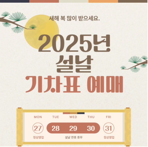 2025년 설날은 1월 28일부터 30일까지로, 기차표 예매가 치열할 것으로 예상됩니다. KTX와 SRT의 사전 예매는 경로·장애인 대상은 1월 13일부터, 일반은 1월 15일부터 시작됩니다.